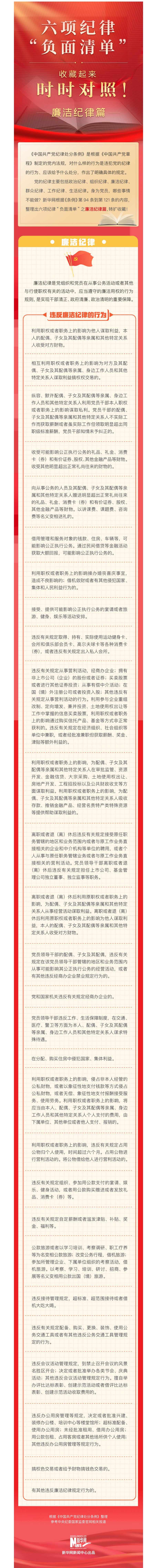 【學條例 守黨紀】六項紀律“負面清單” | 廉潔紀律篇