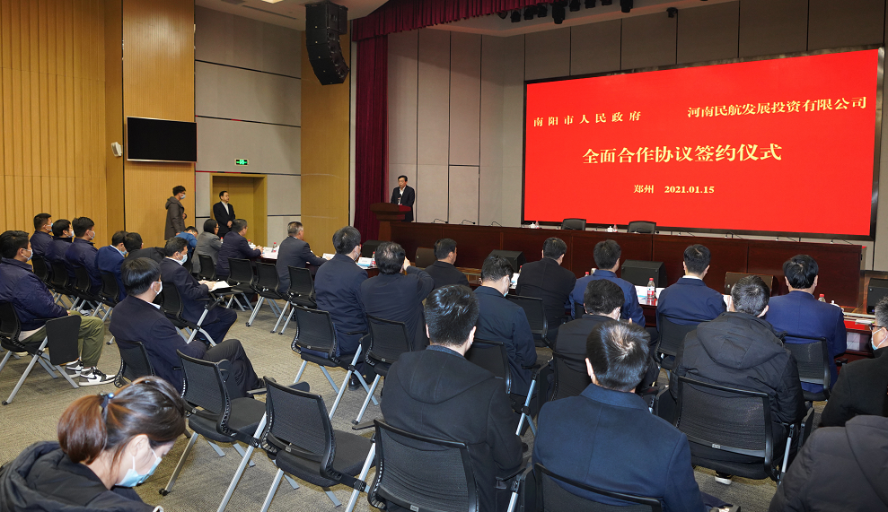 1月15日,河南航投與南陽市人民政府在鄭州簽訂全面合作協議。南陽市委書記張文深,市長霍好勝;河南航投黨委書記、董事長張明超,總經理、黨委副書記、副董事長劉建葆等出席簽約儀式。簽約前,張文深、張明超等就雙方合作進行深入座談。